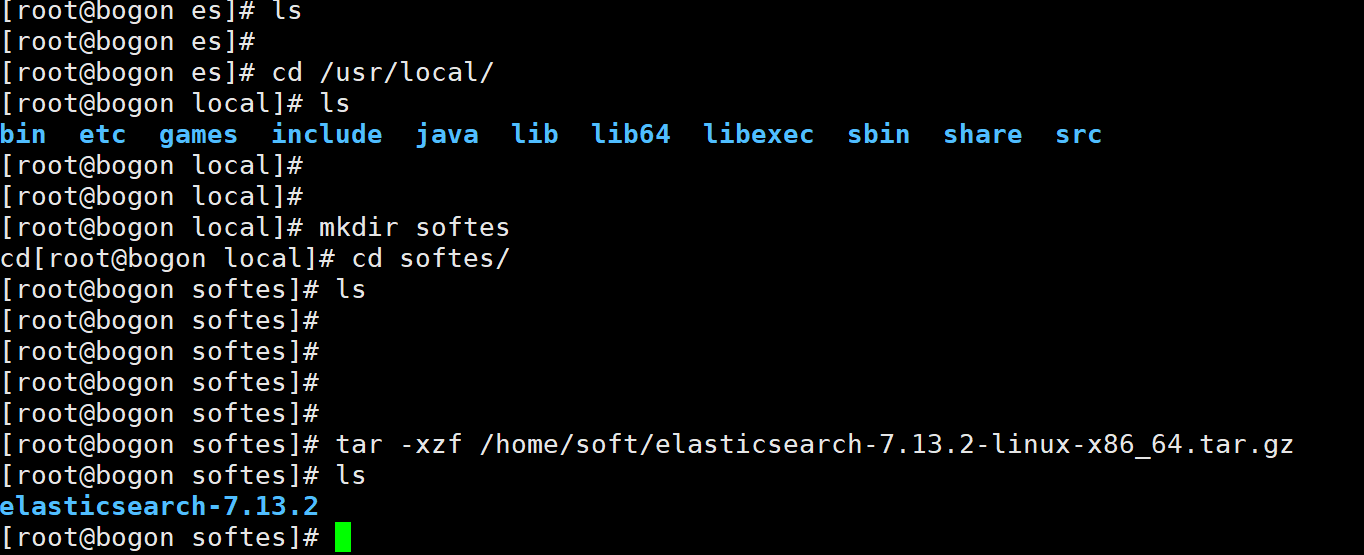 tar -xzf /home/soft/elasticsearch-7.13.2-linux-x86_64.tar.gz