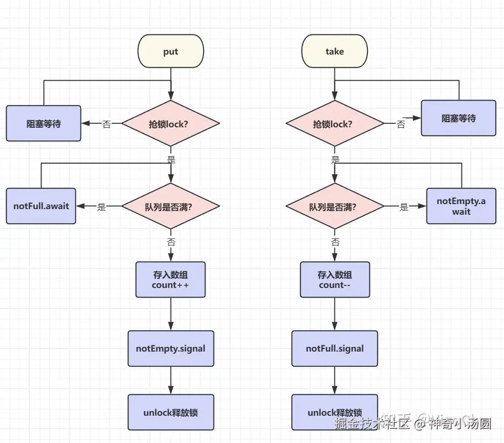notEmpty:当队列为空(count=0)时,出队线程会阻塞在该对象上,等待新元素入队。notFull:当队列已满(count=length)时,入队线程会阻塞在该对象上,等待队列腾出空位。
