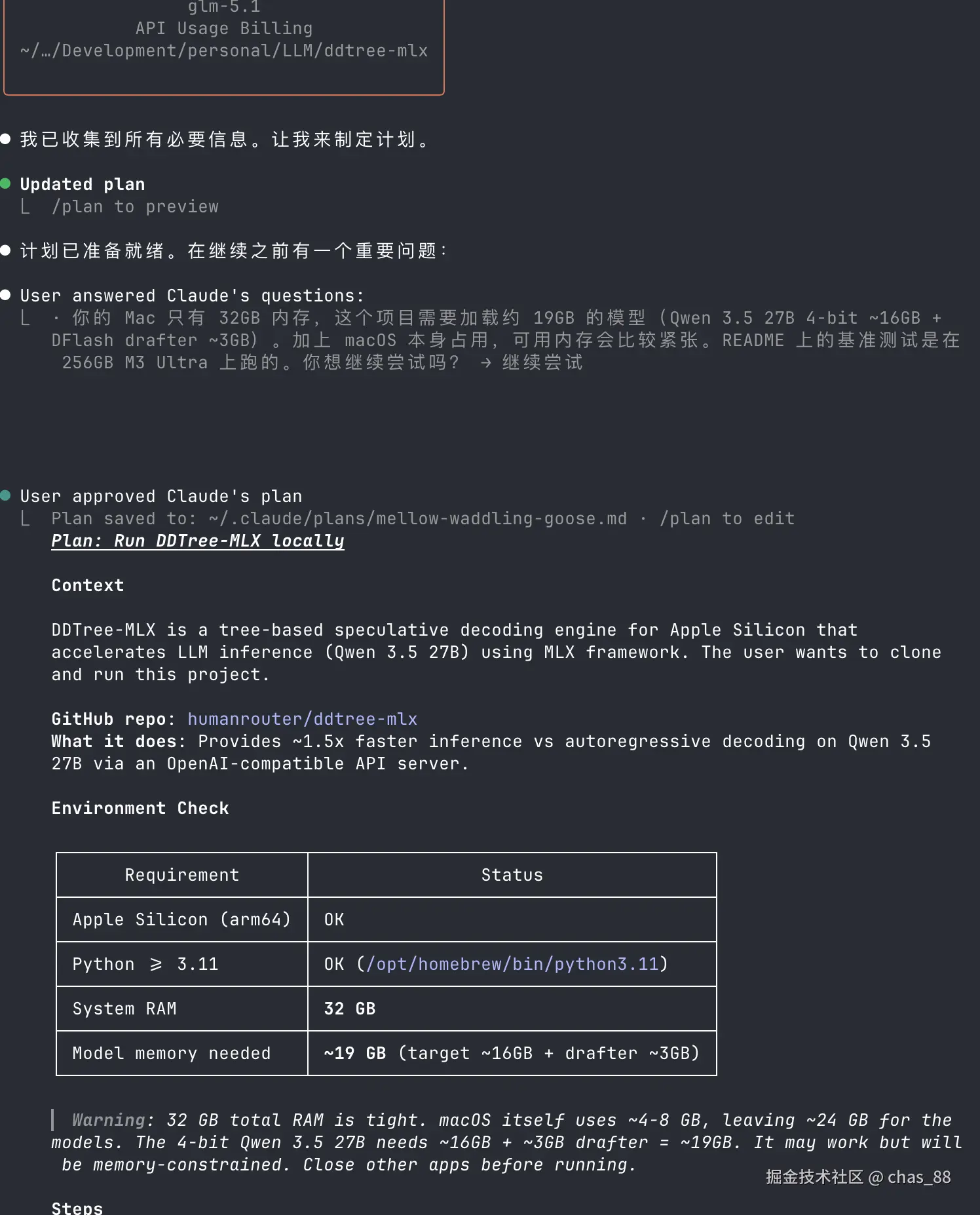 看了一个小视频说ddtree-mlx可以在丐版16G M4 macbook上运行qwen3.5-8b效果很好,果断尝试一下,这是我的一些操作流程记录一下: