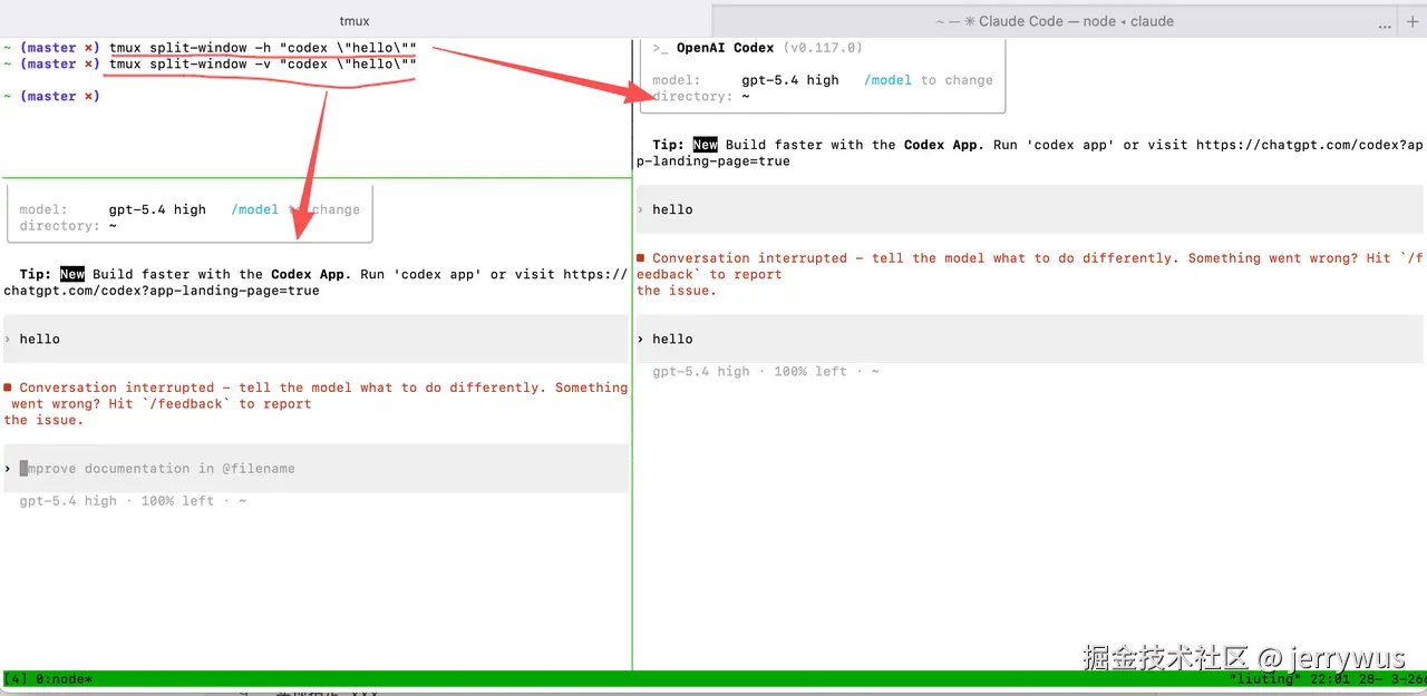 claudecode codex mcp或者claudecode codex skills或者codex-plugin-cc,因为这3种都是静默在claudecode会话中的,体验不好,比如崩了无法继续。一键式 **tmux**配置,支持终端自动化,适用于 AI 代理:
