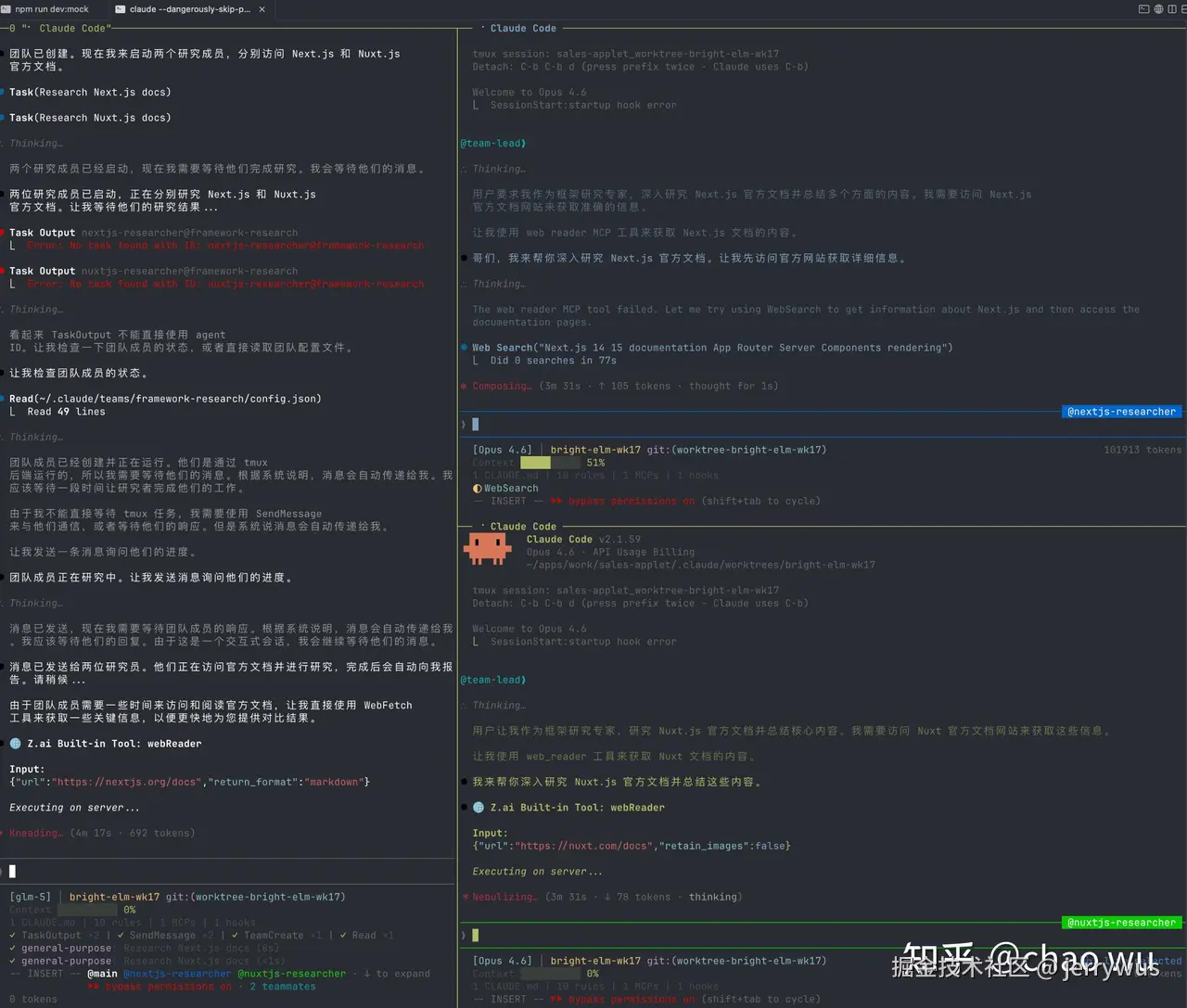 - 通过tmux + agent team