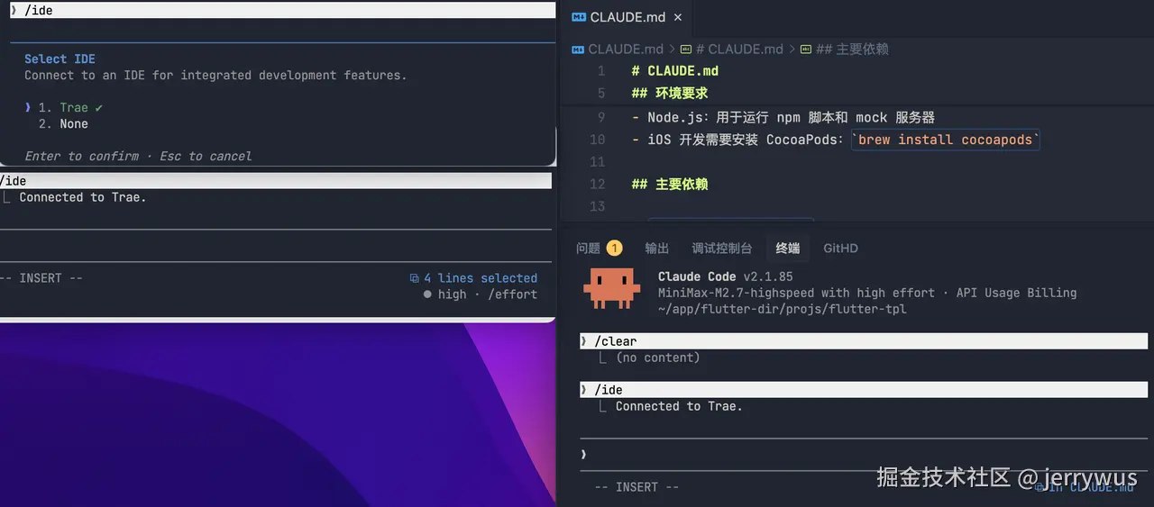 注意:需要/config打开 auto-connect-to-ide设置