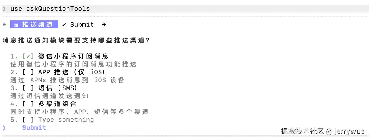 use askQuestionTools 我想实现小程序的消息推送模块