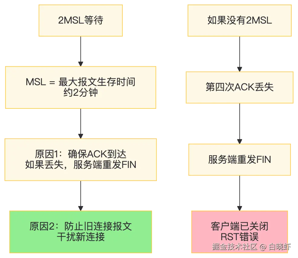 | TIME_WAIT作用? | 确保ACK到达;防止旧报文干扰新连接 |
