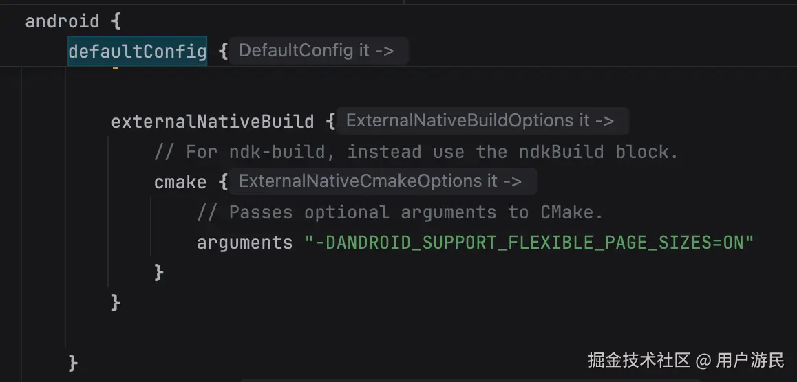 arguments "-DANDROID_SUPPORT_FLEXIBLE_PAGE_SIZES=ON"