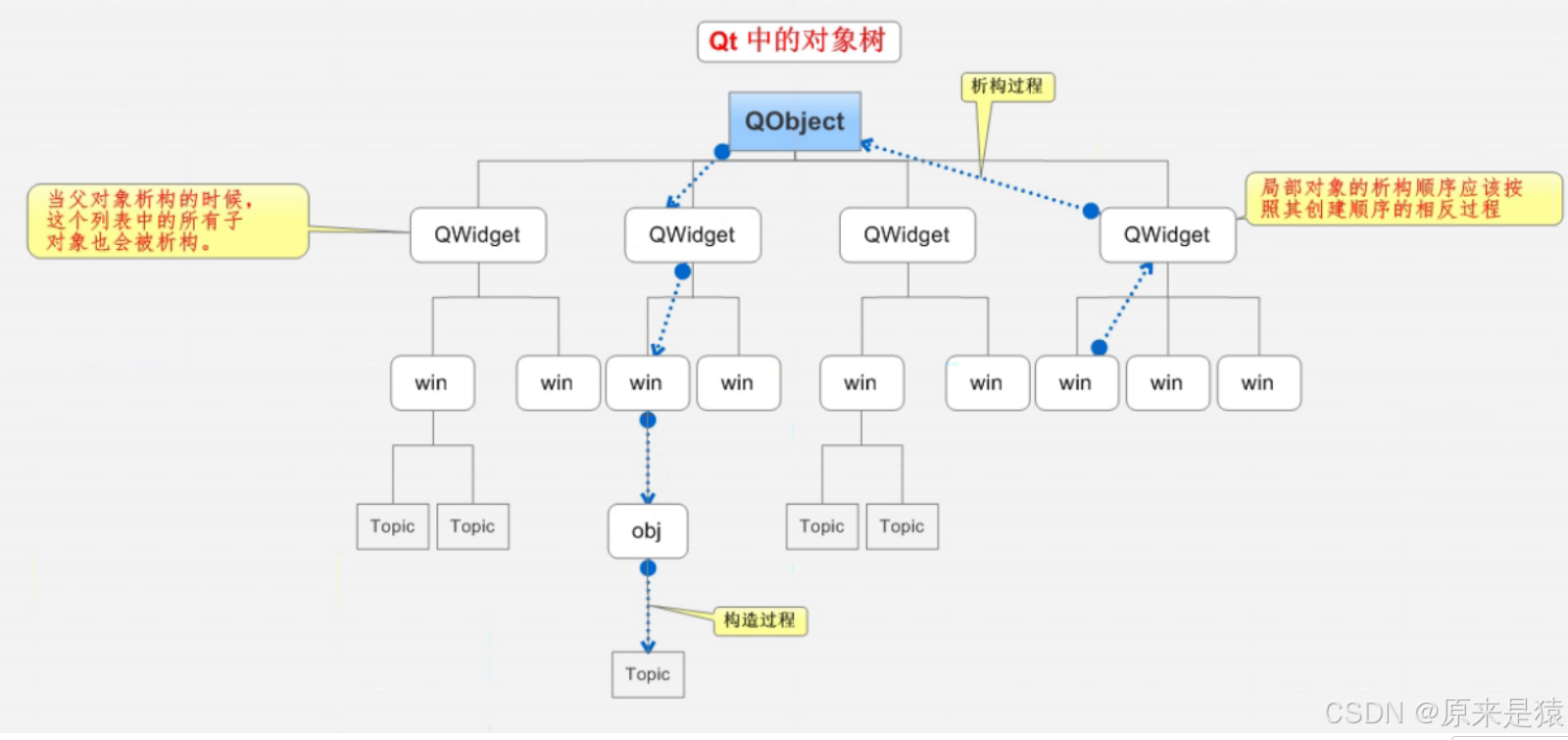 - Q0bject是以对象树的形式组织起来的。