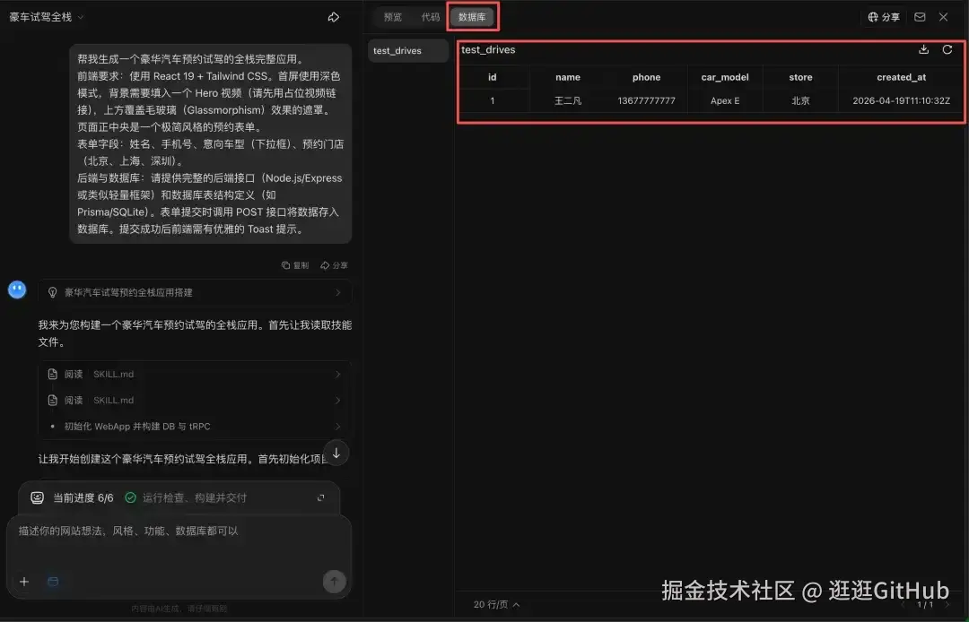 还有一个关键的进化:它不再只是做前端页面了,它开始交付完整应用。