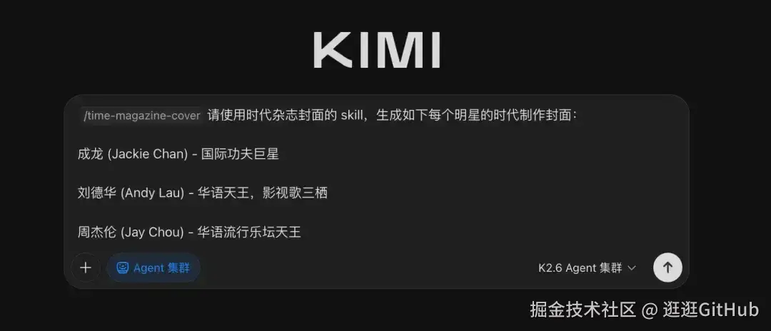 Kimi 的技能推出了一个新的能力, 和 Agent 集群模式配合简直是绝配。