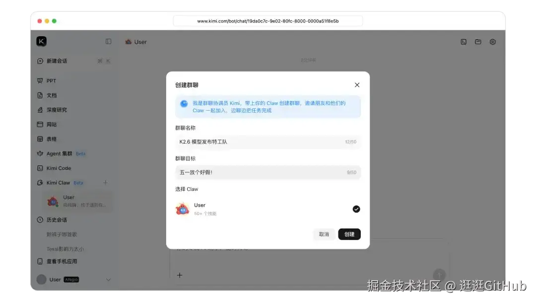 不知道 Kimi Claw 群聊怎么做的,等内测到我了体验一下。
