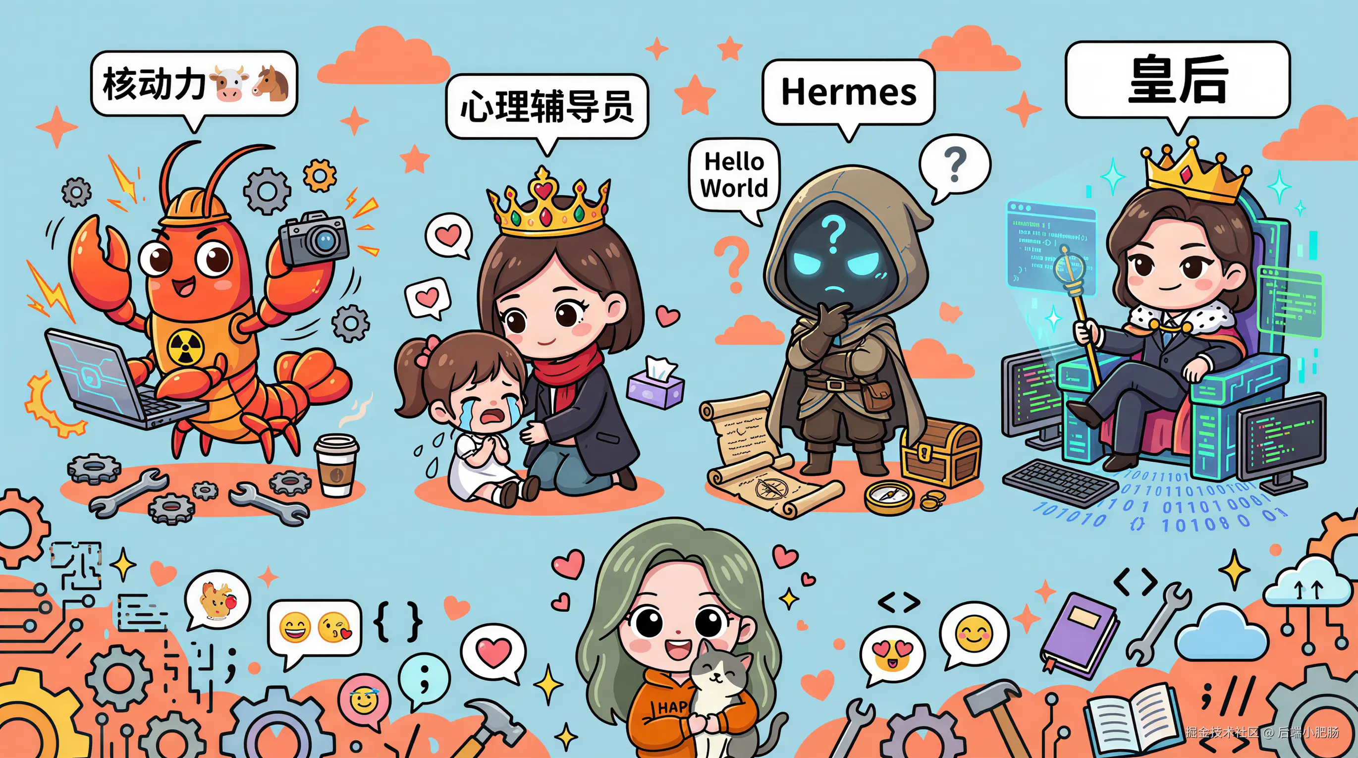 画了一张漫画示意图,大家凑合看吧。虽然工具很多,但是我的一人公司运转依然很艰难,没有网上大佬那种起飞的暴爽时刻,只有每天日复一日的忙碌+深耕+灵感挖掘+内容复盘+bug调试(每日一问龙虾为啥不回复我了) ,最近有朋友说我的朋友圈没有活人感,全是AI干货感觉像机器人,我想说有没有可能我已经没有生活了...当然这些心酸的话我憋回去了,没有说出口,对于朋友提的意见我只是淡淡回了一句ok。