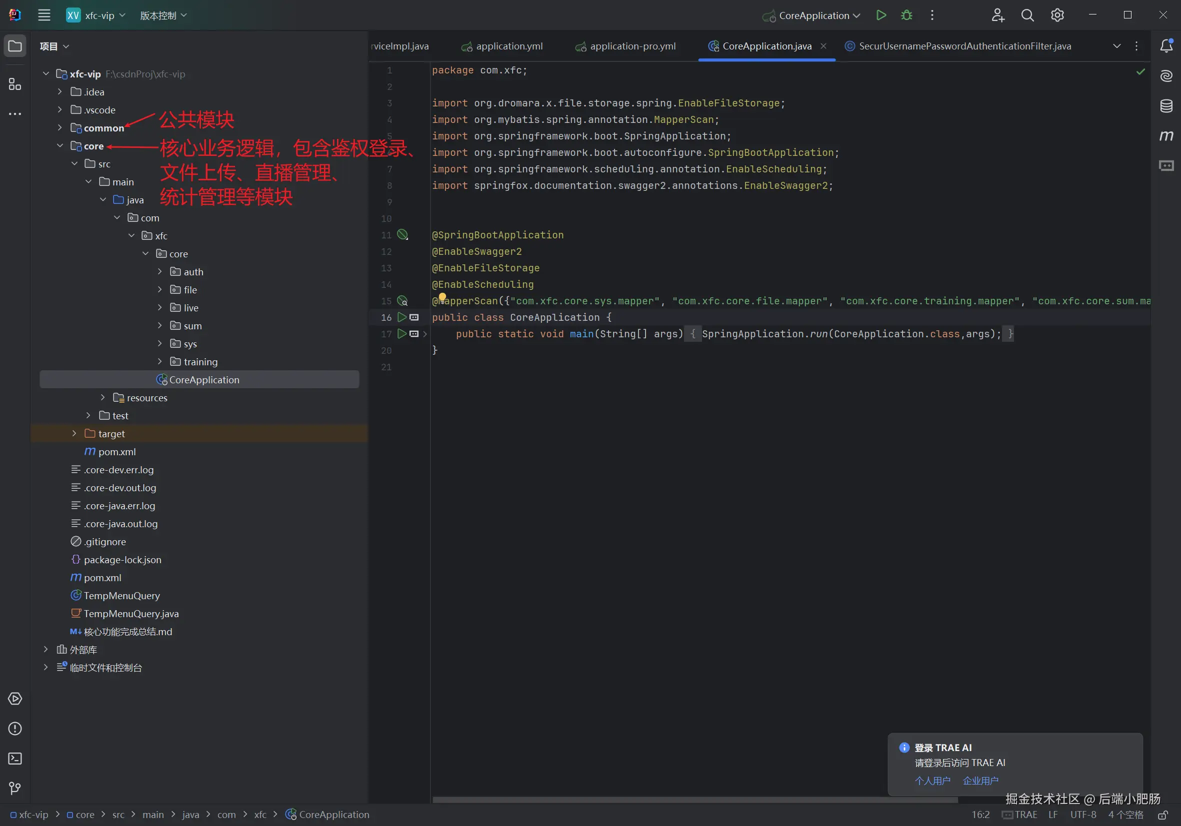 然后又用一天时间把后端架子搭了个7788,把权限框架底座搭上去了,感恩2年前的自己沉淀了不少有用的框架和工具,要是没这些现成的框架,现在我写代码的水平也就能勉强搞个冒泡排序。