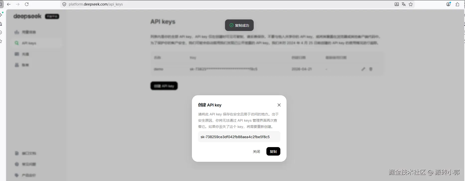 充值后在API key 里面创建一个钥匙并粘贴(一定要保存,不然就重新创建)