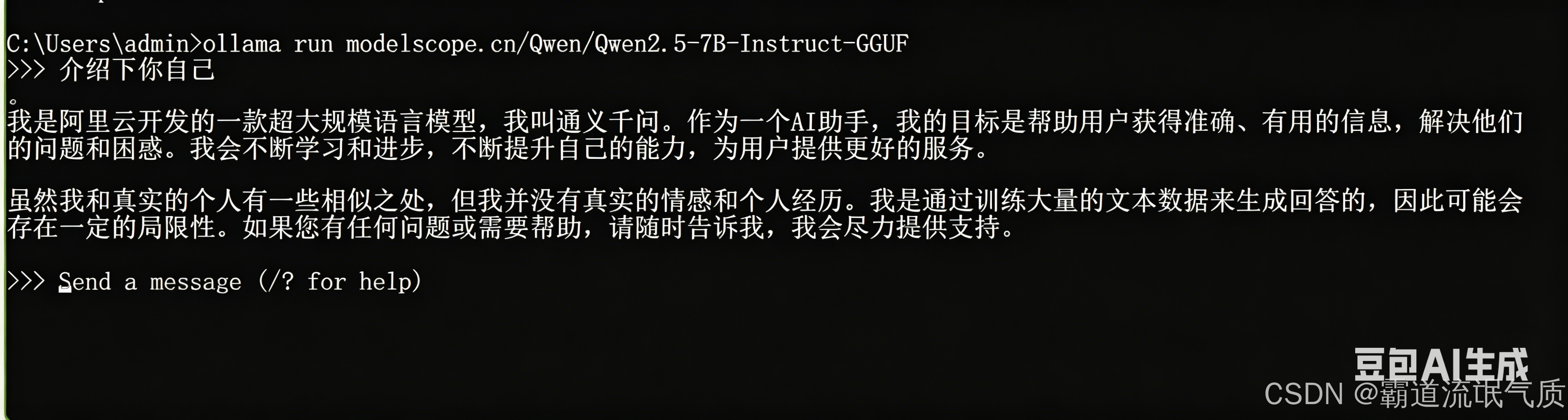 ollama run modelscope.cn/Qwen/Qwen2.5-7B-Instruct-GGUF
