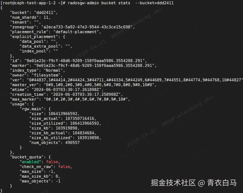 radosgw-admin bucket stats --bucket=桶名