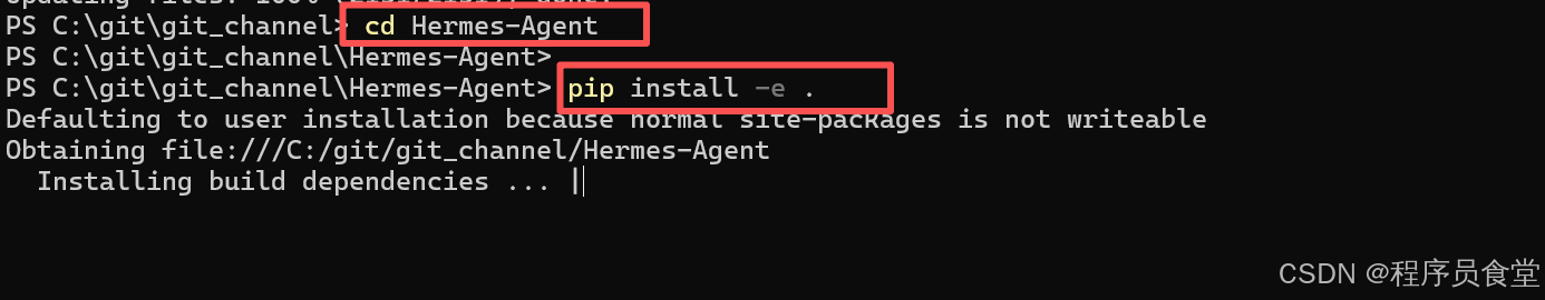 ✅ 安装成功标志 :不会报找不到包,最后显示 Successfully installed hermes-agent-xxx
