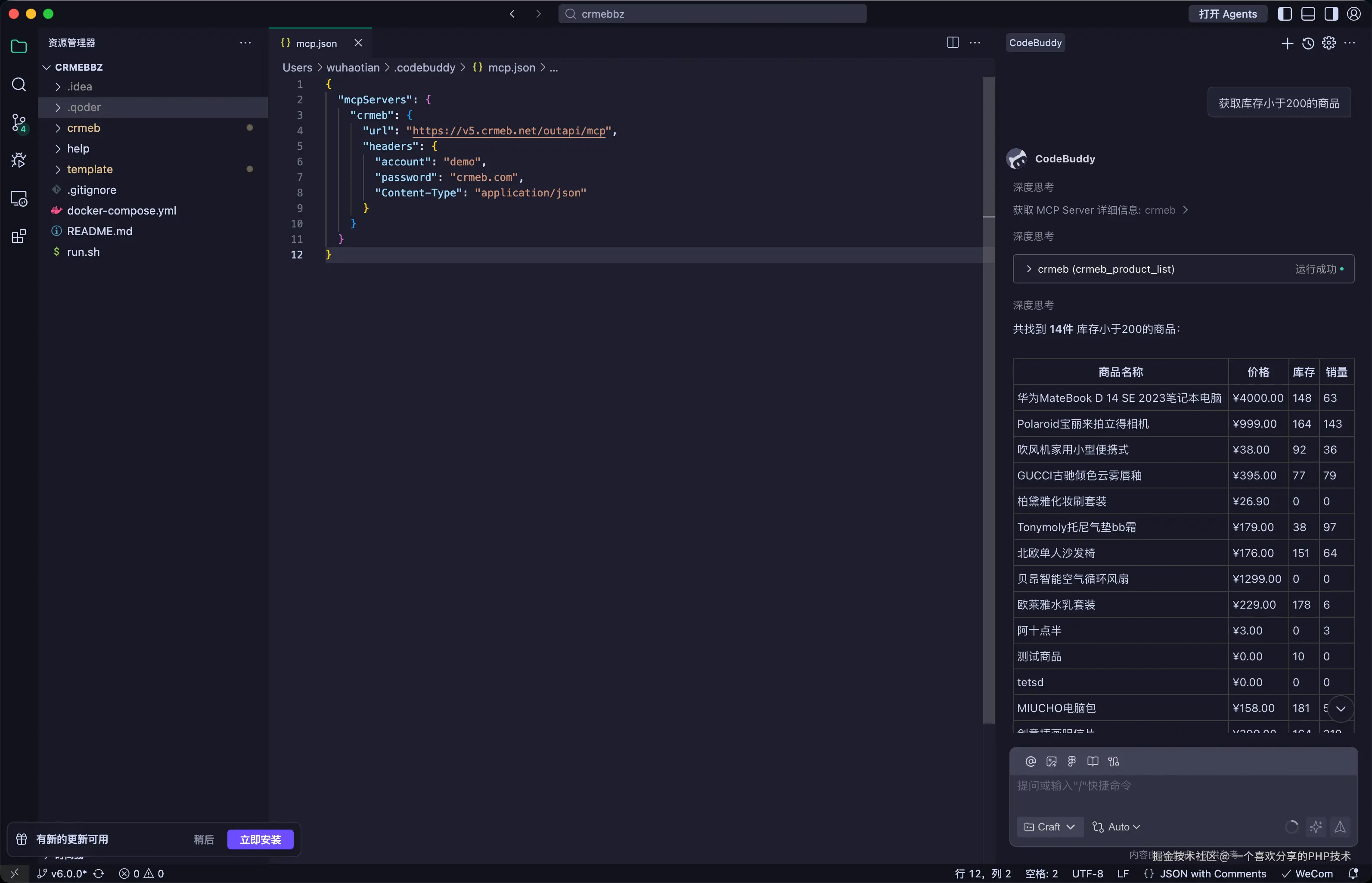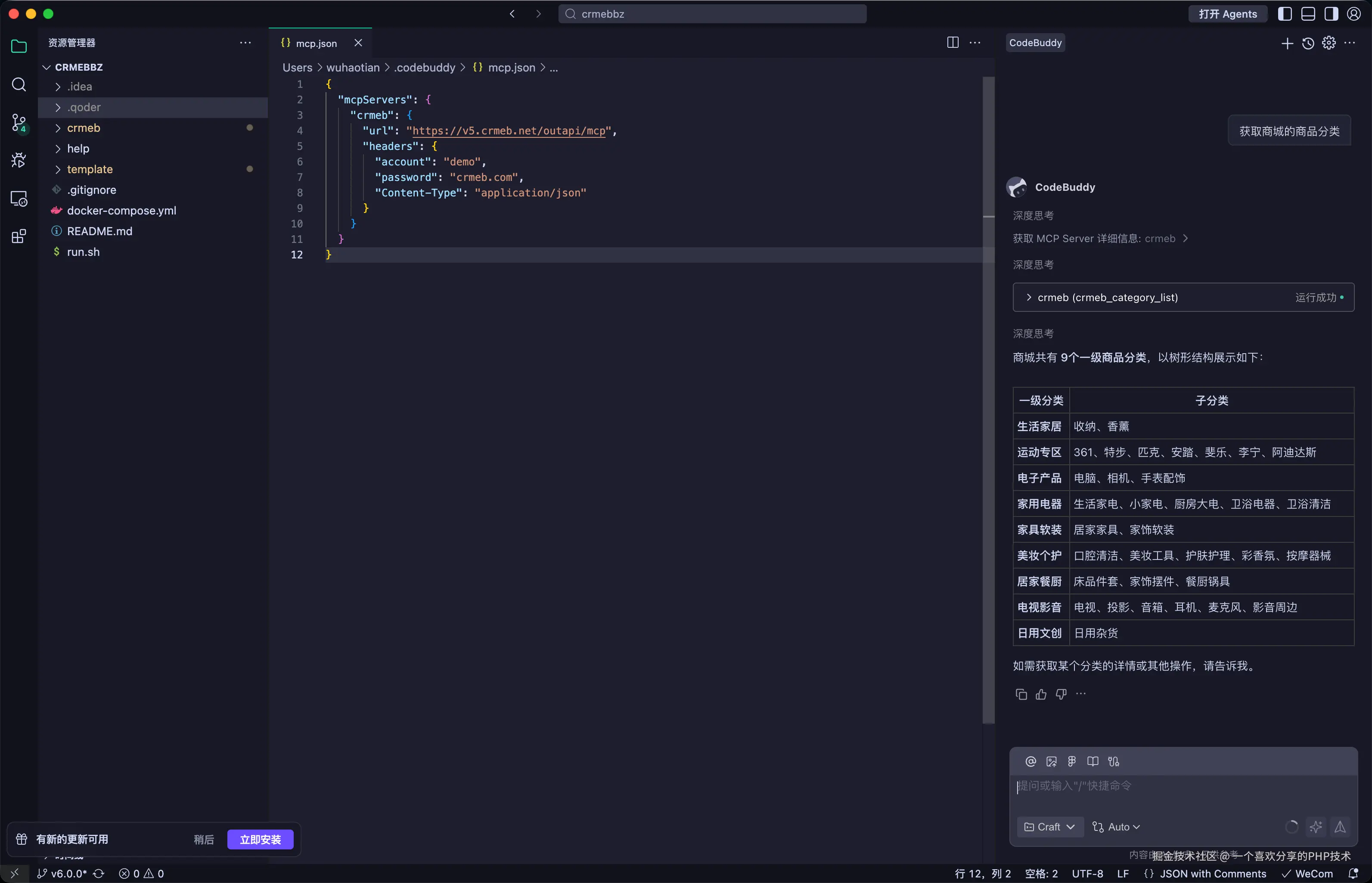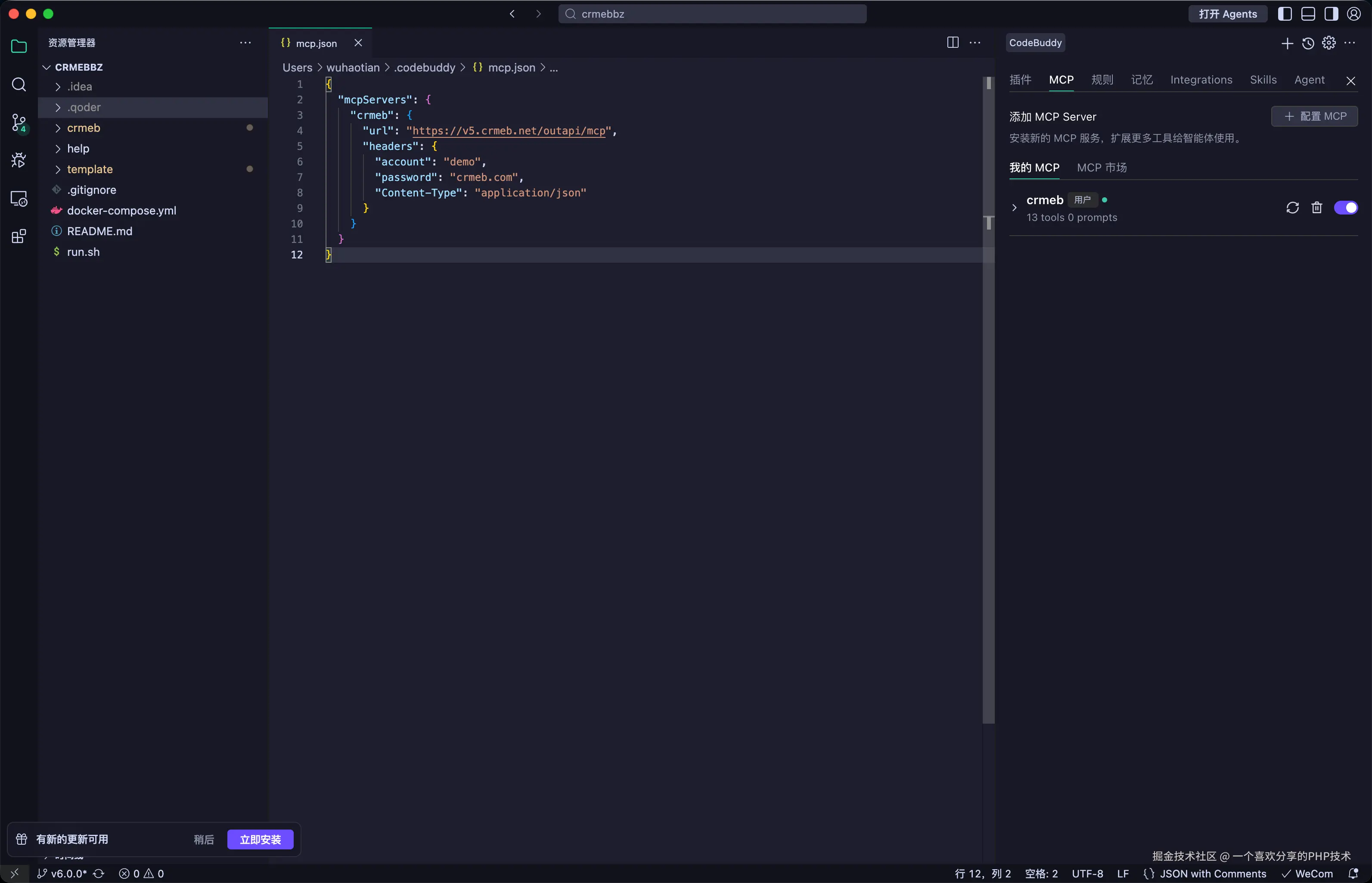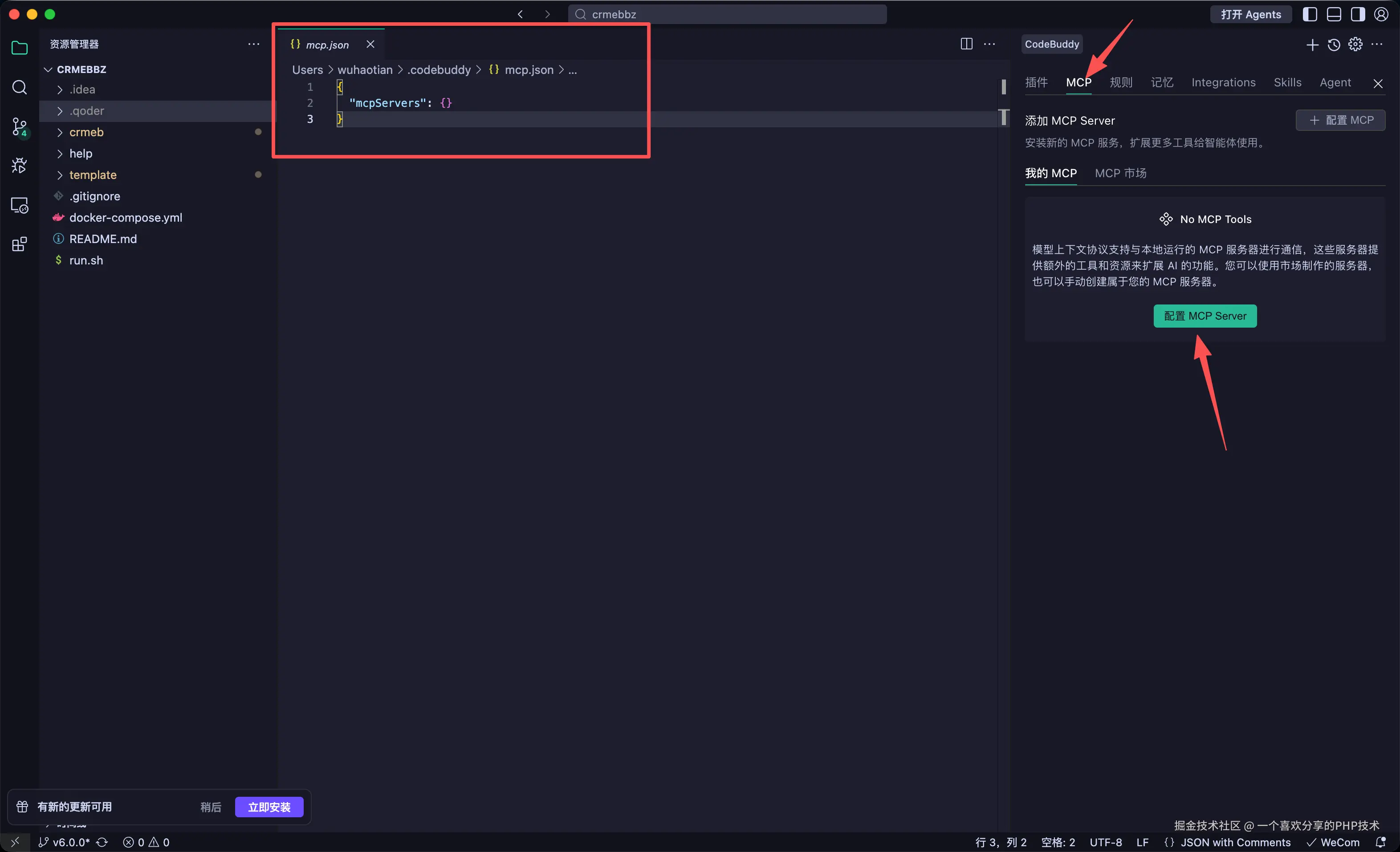 2、安装登录成功之后,在编辑器中配置MCP
