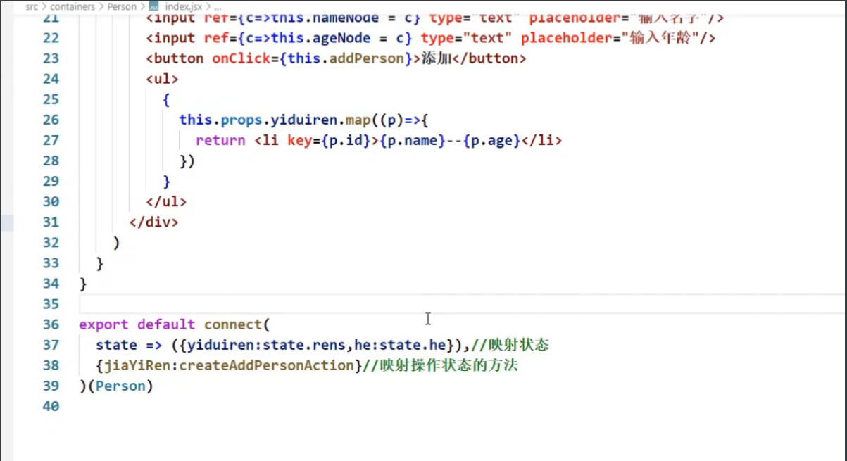 (1). 定义一个Person组件,和Count组件通过redux共享数据。