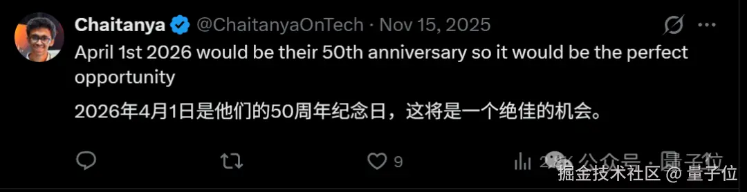 虽然库克本人推特主页暂未更新,但就像网友之前提到的那样,今年刚好是苹果成立 50 周年的时间。