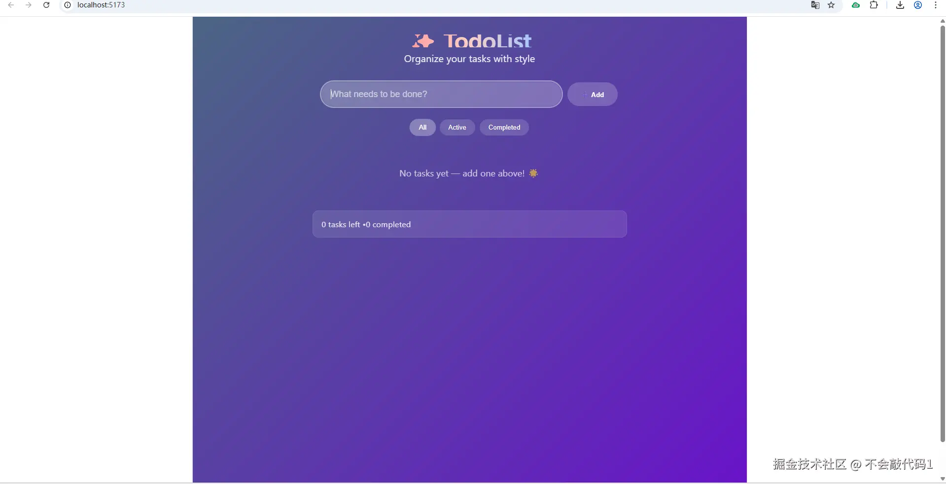 "创建一个功能丰富的 React TodoList 应用,用 pnpm,带 localStorage 和动画"