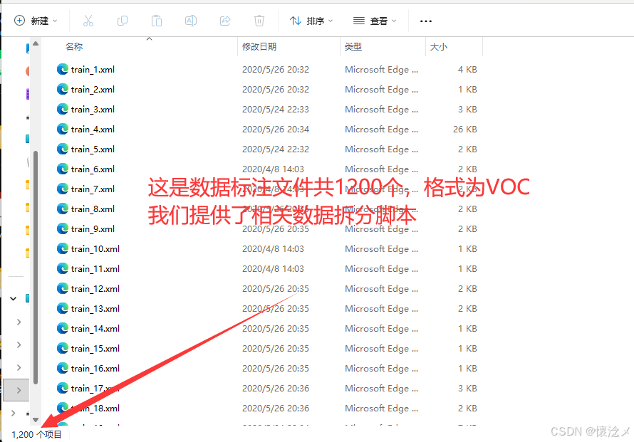 我们使用VOC的格式存储数据标注文件,单数据标注文件内容如下: