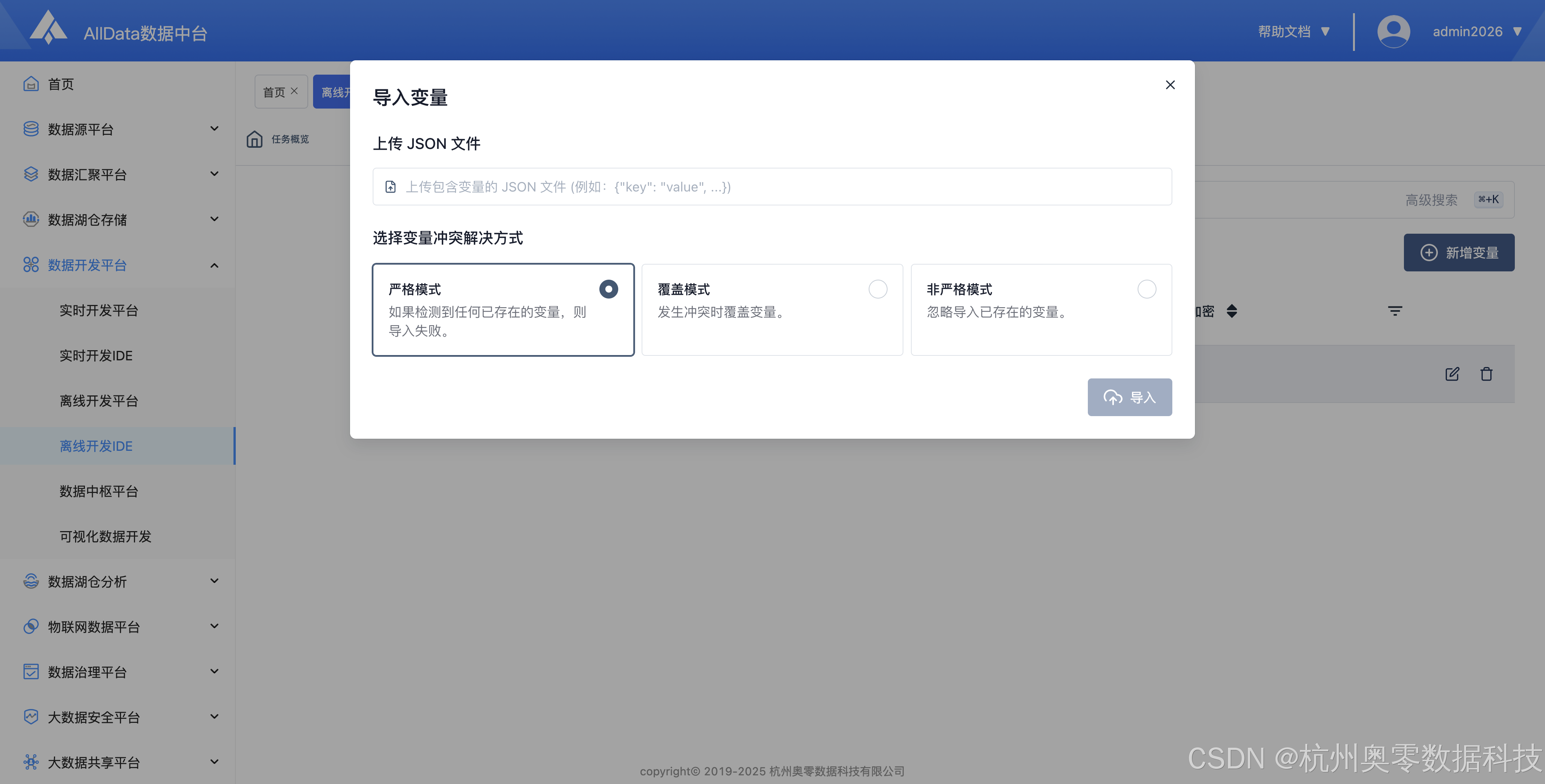 支持用户权限、参数配置、环境管理等功能,结合 AirFlow 实现统一权限管控与系统参数维护,保障离线开发 IDE 安全稳定运行。