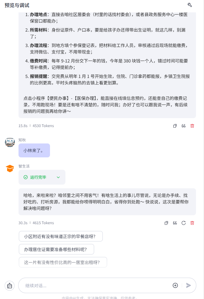 智能体将优先从知识库检索信息,保证回答精准、贴合本地场景。