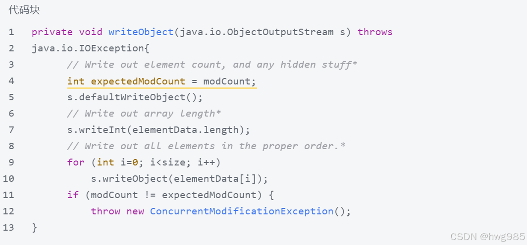 图片代码里还有一行检查。这是为了防止在你"打包"的过程中,另一个线程突然改了 List 的内容。如果改了,它会直接抛出 ConcurrentModificationException 报错。这就是我们之前讨论的,它在努力保证操作过程的安全性。