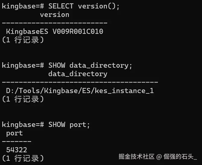 ksql -U system -d kingbase -h 127.0.0.1 -p 54322