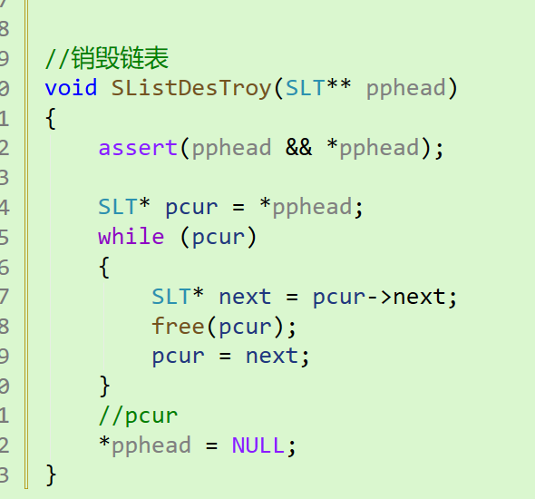 如此往复 直至 最后 指向null循环结束 别忘记将头节点置为空 因为空间全部被释放了