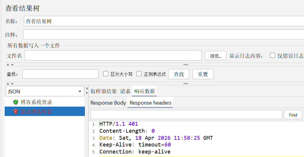 实际上对于登录路径无需配置HTTP信息头管理器,HTTP信息头管理器可以直接作为获取博客列表的子接口 ,此时该HTTP请求头信息仅作用在博客列表页: