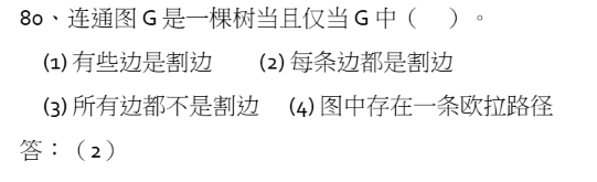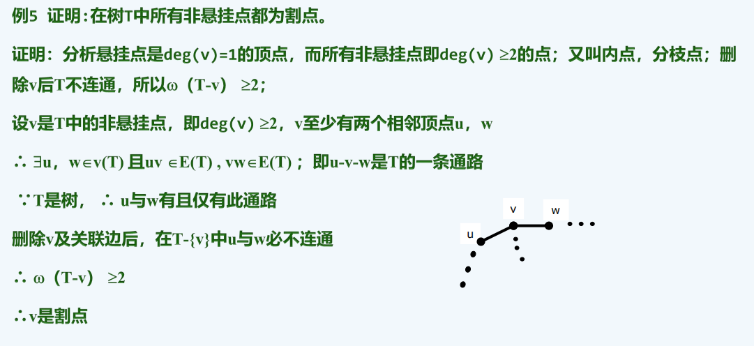 考察割点的定义------删去后不连通,以及性质------度数大于2,作为翻译条件,常与树的无环特性结合考连通性