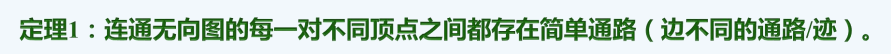 比如第一题,连通图任意两点必定有通路,接着构造简单通路,不妨设这条通路是x0x1x2 ...xn,如果当前通路不是简单通路 ,则一定有重复边和重复点构成回路,删去这条回路,如果还有继续删,直到变为简单通路。