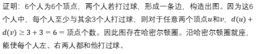 应用题一般考"满足证明"问题,因此一般凑充分条件------任意两个顶点度数和大于顶点数