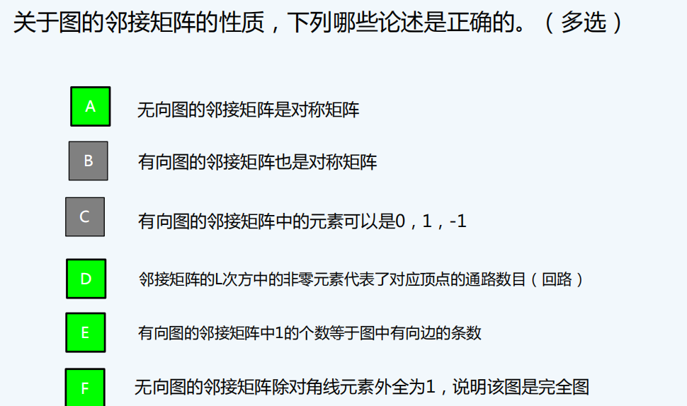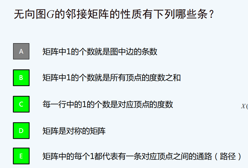 有时候考察由矩阵能得到图的什么信息,一般出选择。