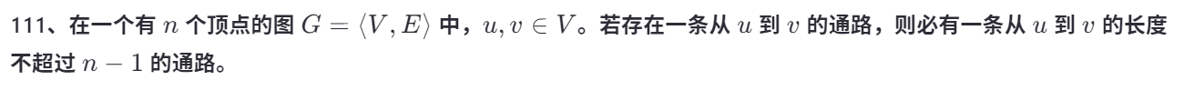 很自然会想到假设长度大于n-1,就有重复顶点,删去就可以减少长度,减到n-1就可以了。
