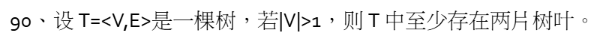 树是无环连通图,且满足e=n-1,当n>2时,e>1,有边存在,即树中至少存在一个度数大于1的非叶结点 v,v至少连接了两个其他结点,删去后由于无环,变为不连通图。