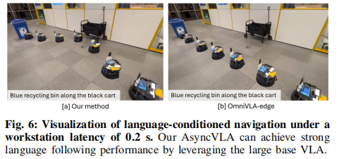 语言导航:AsyncVLA 保留大模型语义能力,能准确执行复杂语言指令,显著优于轻量模型。