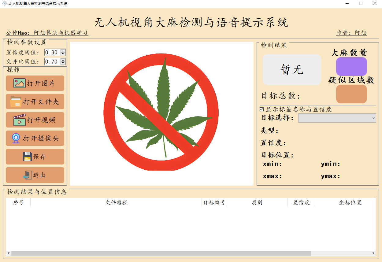 博主基于Pyqt5框架开发了此款【无人机视角大麻检测】与语音提示系统,即文中第一部分的演示内容 ,能够很好的支持图片、视频及摄像头进行检测,同时支持检测结果的保存。