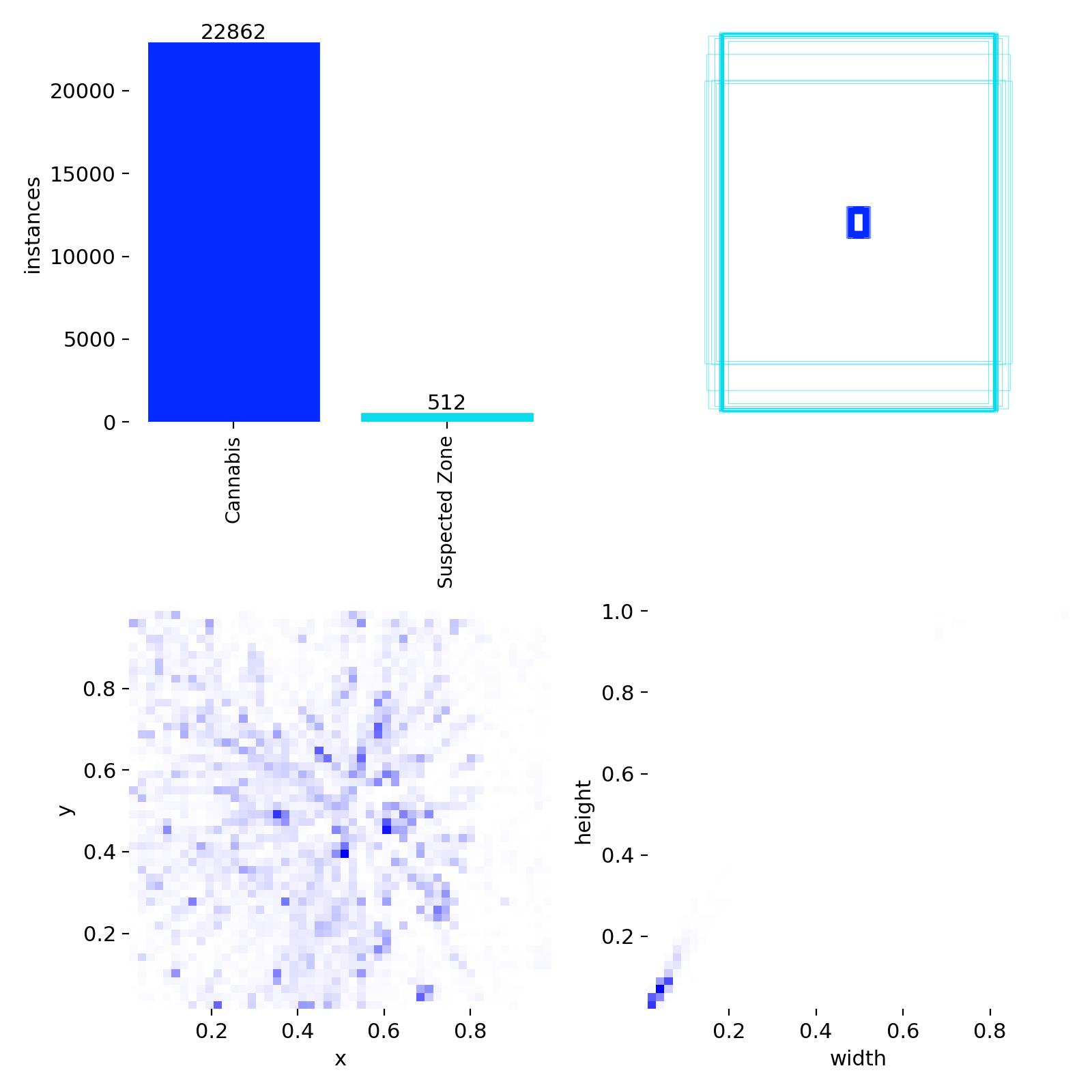 通过网络上搜集关于实际场景中无人机视角拍摄的大麻相关图片,并使用Labelimg标注工具对每张图片进行标注,分2个检测类别:['大麻','疑似区域']。