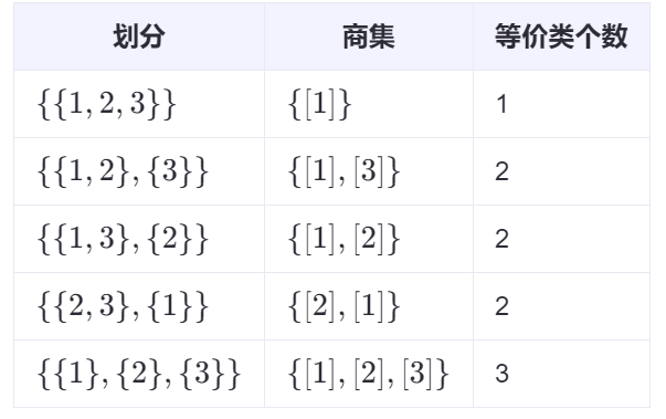 划分数就是对A有几种划分方式 就是商集之集的势;