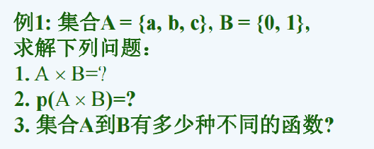 在集合论中,从集合 AA 到集合 BB 的一个关系定义为 A×BA×B 的任意子集。因此,从 AA 到 BB 的不同关系的数量就是 A×BA×B 的幂集的大小。