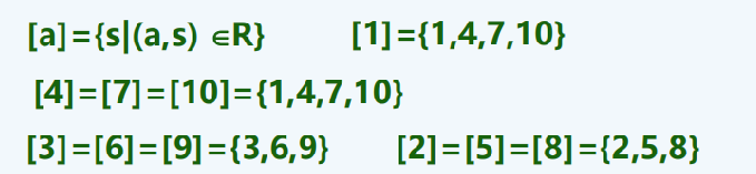 从元素角度来看,与1满足模3关系的元素是1 4 7 10,因此[1]作为代表元[1]=[4]=[7]=[10]