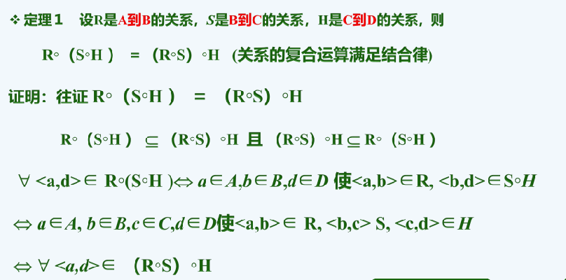 R(SH) ,a∈A,b∈B,<a,b>∈R,d∈D,<b,d>∈SH,c∈C,使得<a,b>∈R <b,c>∈S <c,d>∈H