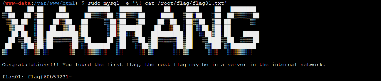 到这里就结束了,是学长租的靶场,卡在内网穿透这一步,靶场快到期了,琢磨一个小时左右,反正就做了给flag01。