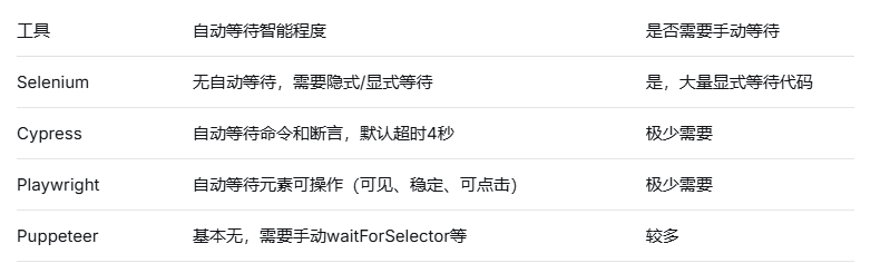 我的个人建议:如果你正在从零开始搭建UI自动化框架,首选Playwright。它解决了Selenium最痛的点(等待、调试、速度),且支持所有主流语言。Selenium仍然适合已有大量投资或需要IE支持的项目。