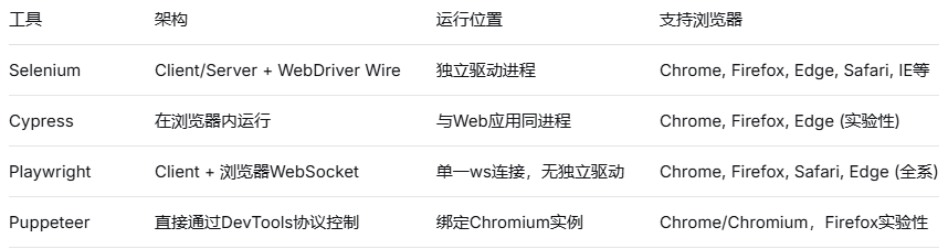 Selenium 曾经是事实标准,但近几年 Cypress、Playwright、Puppeteer 异军突起,各有千秋。选错工具会导致开发效率低下、维护痛苦。