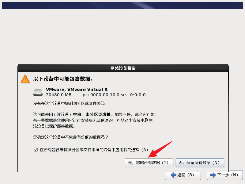 选择 是,忽略所有数据(Y),下一步