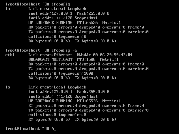 执行 ifconfig 看网卡,没有输出信息,然后执行 ifconfig -a