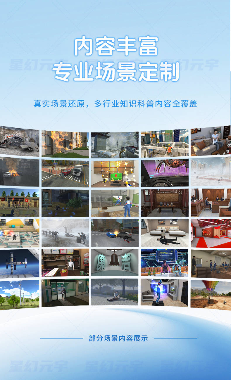 VR科普行走平台具备高度内容可扩展性,可根据不同主题进行定制: