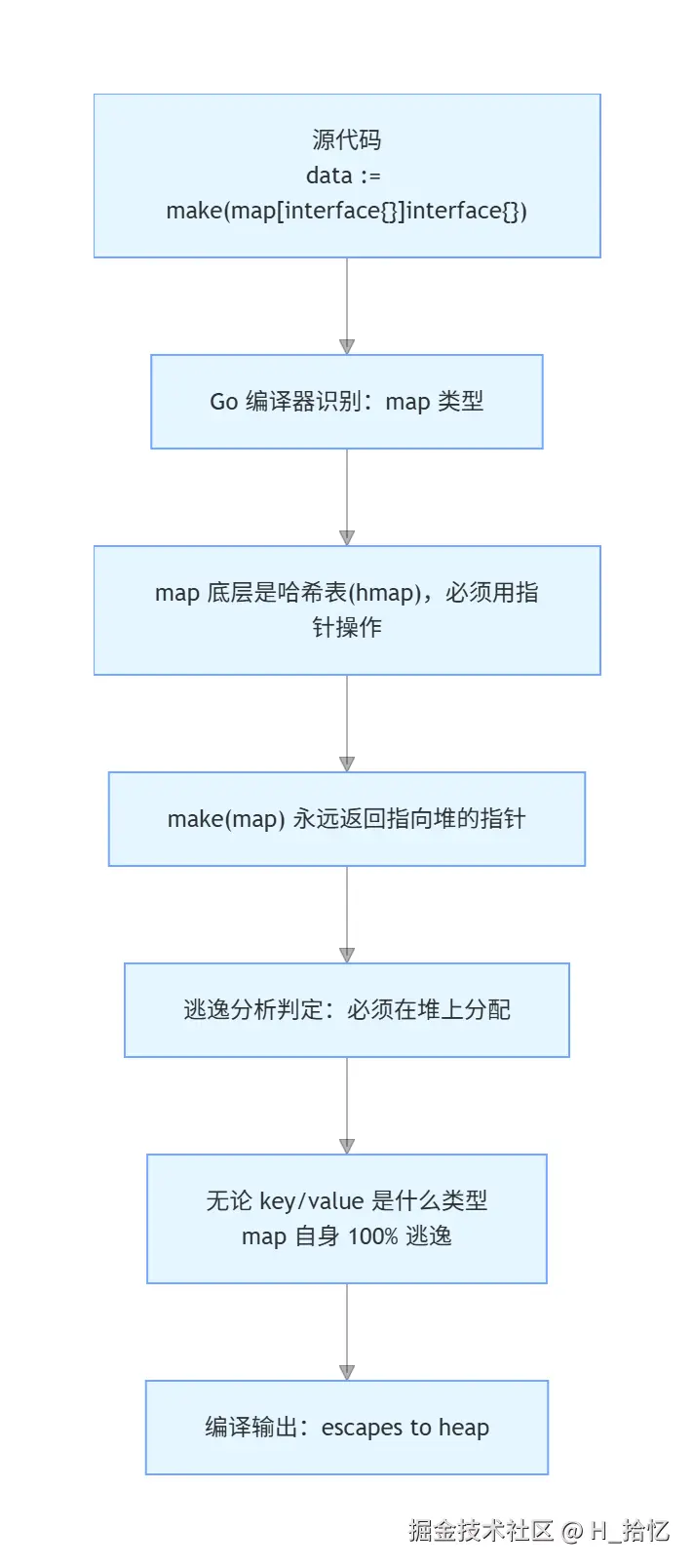 如果变量是map[string]interface{}类型且尝试通过赋值.则必定出现逃逸.